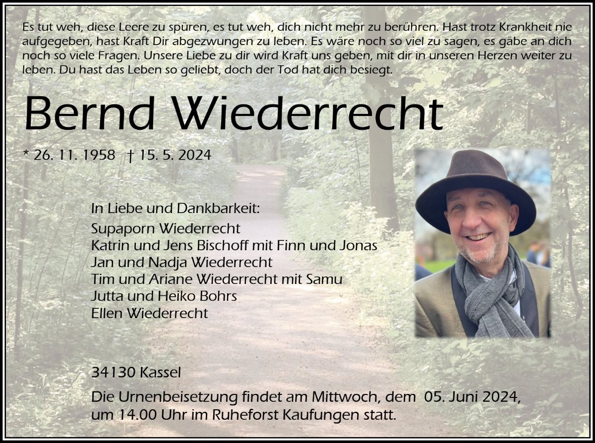 die Lücke, die Bernd hinterlässt, kann nicht durch einen anderen Menschen gefüllt werden. Sie lässt sich nur verkleinern, durch die unvergessenen Momente und Gedanken an Bernd.