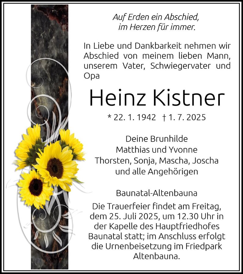 Sprechen Sie im Kondolenzbuch den Hinterbliebenen Ihr Beileid aus und teilen Sie persönliche Gedanken und Erinnerungen mit anderen.