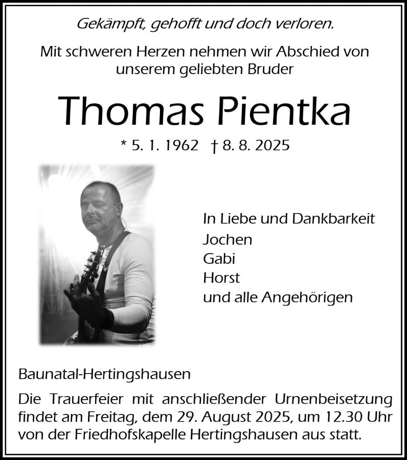 mit großer Bestürzung habe ich von Thomas Tod erfahren. Ich möchte Euch mein aufrichtiges Beileid aussprechen und Euch in dieser schweren Zeit viel Kraft wünschen.